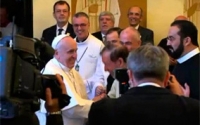 El Obispo de Roma fue recibido por el cardenal arzobispo de Aparecida y presidente de los obispos brasileños, Raymundo Damasceno Assis, con quien se trasladó hasta el santuario mariano, donde se venera a la Virgen que le da el nombre y es el más visitado de Brasil, con casi 12 millones de fieles anuales.