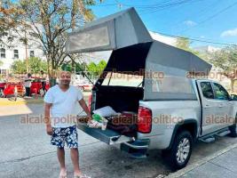 Sus conocimientos en herrería ayudaron a Luis a poder crear una casa de campaña improvisada en su camioneta y así tener un lugar para pernoctar a las afueras del hospital IMSS-Bienestar de Coatzacoalcos, mientras espera noticias de su suegro.