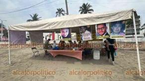 Integrantes del Colectivo Solecito venden alimentos en la playa Villa del Mar del puerto de Veracruz. Tradicionalmente, en esta temporada vacacional recaudan fondos para las brigadas que llevan a cabo jornadas de búsqueda en el Estado.