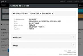 Al consultar el estatus de cada uno de los tres niveles educativos, la SEP indica que UPAV Dirección de Educación Superior cuenta con clave de escuela: 30ESU0242Y y sobre su situación la cataloga como “Activo”.