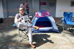 El integrante del Frente Cívico Nacional, Juan Carlos Krausse Rivera, inició un ayuno y campamento de 12:00 horas a las afueras de las instalaciones del Instituto Nacional Electoral (INE) en Xalapa.