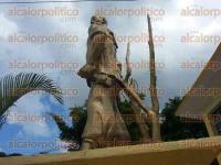 Una parte del monumento a Serafín Olarte cayó y lesionó a un niño de diez años que caminaba por el lugar, por lo que paramédicos de Protección Civil lo atendieron rápidamente.