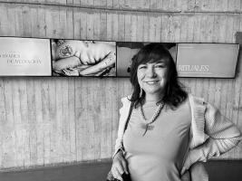 La artista visual es experta en la fotografía documental. Su trabajo profesional inicia con la investigación del tema, de ilustrarse con muchas imágenes sobre ello y para redondear la información busca a la gente. Un ejemplo de ello es su serie “Horas Negras”, fotografías en blanco y negro de mujeres encarceladas, realizado con un equipo básico: su cámara, quizá 2 lentes, rollos que reveló e imprimió. Con su trabajo terminado, lo digitalizó para hacer un libro.