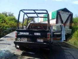 El vehículo 2538 de la Fuerza Civil, que presuntamente invadió el carril contrario, se impactó contra un Torton. Luego de la colisión, la patrulla, que era una camioneta de doble cabina, quedó en sentido contrario y en su interior un oficial gravemente herido; en tanto que 4 más resultaron lesionados.