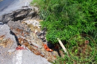 Actualmente el daño en la carpeta de rodamiento es tal que afecta medio carril del camino. El único señalamiento que alerta a los conductores del peligro es una llanta que fue colocada de forma improvisada, pero es más otro riesgo que un señalamiento. Urge que las autoridades hagan algo al respecto, antes de que el problema sea mayor y esta vía de comunicación se vea bloqueada.