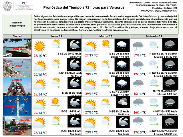 Persistirá ambiente frío y heladas por las noches en zonas altas, posible surada en región de Córdoba; miércoles de lluvia por nortes en la zona costera