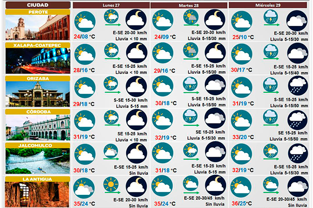 Persistirá el ambiente diurno cálido y bochornoso en el Estado; a partir del martes aumentará gradualmente el potencial de lluvias