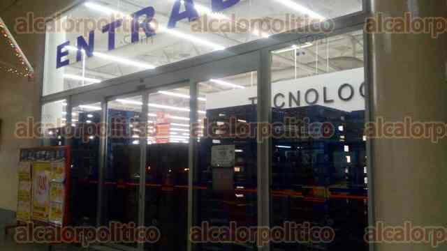 Personal del Chedraui ubicado en la Plaza Museo colocó barricada ante rumores de saqueo y actos vandálicos