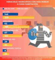 Por cuanto hace al ámbito municipal, el SESNSP de la SEGOB indica que los mayores incrementos en el robo a casa-habitación durante el periodo enero-julio de este año en la entidad veracruzana son: