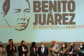 Así lo auguró al recibir la medalla al mérito ciudadano Benito Juárez, que le otorgó la dirigencia nacional de Movimiento Ciudadano.