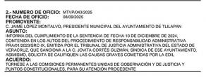 La resolución fue emitida por el Tribunal de Justicia Administrativa del Estado y señala que la síndica se negó a entregar la firma electrónica del municipio, lo que provocó que el Ayuntamiento incumpliera sus obligaciones fiscales, lo que generó recargos, actualizaciones y un daño al patrimonio municipal.