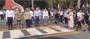 Francos y su comuna, que encabezaron la parada cívica partiendo de la alameda central hasta el teatro Ignacio de la Llave, en donde tomaron su lugar en el estrado colocado para tal fin. Posiblemente debido al calor, se dio un incidente lamentable cuando una alumna de secundaria se desmayó ya finalizando el trayecto.