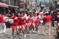 Intercalados entre los contingentes petroleros, alumnos de escuelas primarias, secundarias y bachilleratos de la localidad presentaron las tradicionales tablas o pirámides, además de las infaltables pomponeras y bandas de guerra representantes de cada escuela.