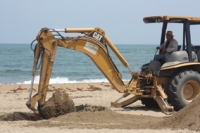 Con el apoyo de maquinaria pesada los pescadores representados por el Agente Municipal de la congregación pesquera de Tonalá, Néstor de la Cruz Morales, se realizaron excavaciones en varios puntos de la playa ubicada a unos metros de la bocana del río.