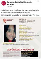 Las 2 mujeres desaparecidas son Melani García Ramírez, tiene 18 años, mide 1.78 metros, es de tez morena clara, tiene los ojos color café oscuro y el cabello castaño oscuro, corto y lacio. Como seña particular la joven tiene nariz chata, boca mediana con labios gruesos.