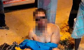 Taxi se impacta contra una roca en la carretera Misantla-Xalapa; no hubo heridos