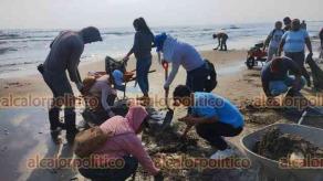 Habitantes, restauranteros y prestadores de servicios turísticos realizaron labores de limpieza en la playa de Jicacal, en el municipio de Pajapan, luego de la presencia de residuos de hidrocarburo detectados en la zona costera desde hace aproximadamente una semana.