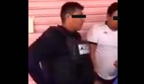 En el video que circula por redes sociales, el policía justifica que sí llevaba cubrebocas pero se le cayó al forcejear con el detenido.