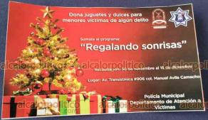La Policía Municipal de Coatzacoalcos arrancó el programa "Regalando Sonrisas" con el que busca recaudar juguetes para regalar a niños de escasos recursos.