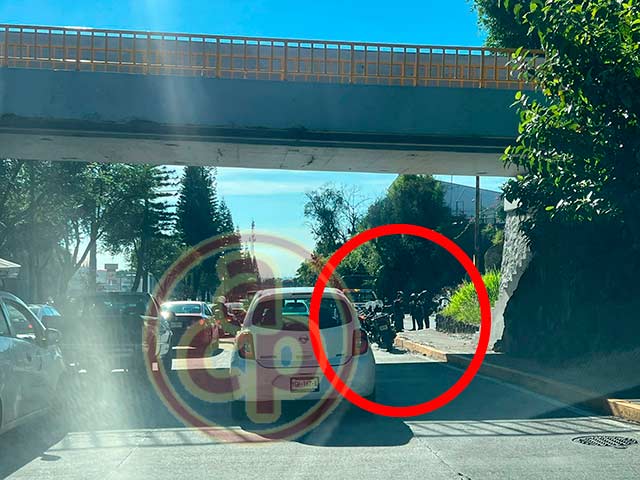 Xalapa, Ver., 28 de septiembre de 2023.- Tras la aparición del mensaje contra Rocío Nahle, quien aspira a la gubernatura, policías llegaron a retirar la lona colgada en el puente de la avenida Lázaro Cárdenas, por Agua Santa.
