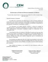 Al dirigirse al pueblo de Dios que peregrina en México, la CEM pidió recordar lo que Jesús dijo en referencia a la paz: que la dejaba y daba, no como el mundo la da, además de solicitar que no se turbe su corazón ni tengan miedo. "En medio de los momentos de violencia que se viven en diversas regiones de nuestro país, como reacción al operativo contra el líder de un grupo criminal, queremos hacernos cercanos a cada uno de ustedes, a sus familias y comunidades compartiendo su preocupación e invitándolos a la prudencia y oración".