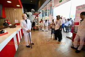 El Coronel Sanders, la icónica figura de la marca, acudió al corte de listón para la inauguración de la sucursal y se tomó fotografías con el público. Zygni fue el primero en llegar, junto con sus amigos Isabel, Alberto, Lulú y David, quienes se formaron en esta sucursal desde el lunes a las 20:00 horas.