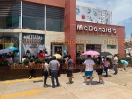 Y es que desde temprana hora, adolescentes acompañados de sus padres comenzaron a hacer filas afuera de la sucursal de comida rápida ubicada en Zaragoza esquina Abasolo de la colonia Manuel Ávila Camacho, sin respetar sana distancia y generando aglomeraciones.