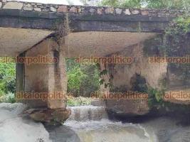 Luego de que fuera denunciado por habitantes de la zona el puente La Poza por mostrar en una de sus columnas centrales aparente daño en su estructura, el paso en la carretera que conduce de Misantla, vía Zaragoza, continúa cerrado para prevenir algún incidente a las personas que transitan diariamente por dicha rúa estatal.