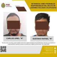 La Fiscalía General del Estado (FGE) informó que elementos de la Policía Ministerial cumplimentaron orden de aprehensión en contra de Carlos Uriel “N” y Gustavo Rafael “N”, como probables responsables del delito de lesiones dolosas calificadas, cometido en agravio de la víctima identificada con las iniciales H.P.R.