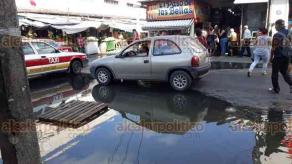 Esta superficie colmada de aguas negras asemeja a una alberca cuyo líquido es impulsado por dos bombas eléctricas a través de una manguera, para llegar a su destino final que es la calle Vicente Guerrero, donde empieza a formarse un caudal de aguas malolientes que dobla en la calle Juan Soto y llegan hasta la avenida Nicolás Bravo, en la zona de mercados.
