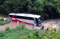 El recorrido por esa vía es totalmente accidentada, y por ahí cruzan varios arroyos de respuesta rápida, los cuales desde la mañana de este lunes estaban crecidos, eso ocasionó que en determinado momento el conductor perdiera el control sobre la unidad y poco a poco la fuerza del agua comenzara a jalar el camión hacia el barranco, arriesgando la vida de quienes viajaban con destino al norte del país.