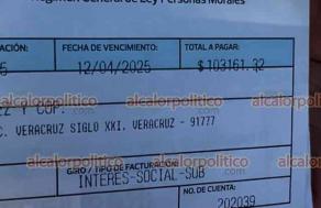 El señor Luis Álvaro Ocampo Gómez, jubilado y pensionado, denunció haber recibido una factura de agua abusiva por un monto de 103 mil 161 pesos con 32 centavos por parte de la empresa Grupo Metropolitano de Agua y Saneamiento (Grupo MAS). El domicilio de afectado se ubica en el Fraccionamiento Veracruz Siglo XXI, una vivienda que consta de sala, comedor, cocina, 3 recámaras y un pequeño patio.