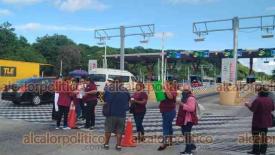 Un grupo de empleados del Hospital del IMSS Bienestar del área de limpieza, incluyendo de los centros de salud provenientes de Salmoral, Chachalacas, Vicente López, se manifestaron este martes en la caseta de peaje de La Antigua, esto por la falta de sus pagos por parte de la empresa Limpieza Especializada Industrial y Hospitalaria (LEIH).