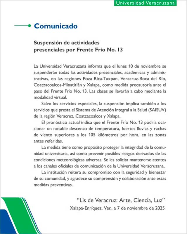 Clases serán virtuales en Poza Rica-Tuxpan, Veracruz, Coatzacoalcos-Minatitlán y Xalapa