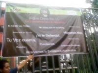 Sin más introducciones para ahorrar tiempo me permito compartirles la imagen tomada de la lona que aparentemente fue colocada en la Facultad de Derecho de la UV en estos días.