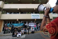 Integrantes de la asociación civil LAVIDA clausuraron de manera simbólica las oficinas de la PROFEPA ubicadas en la calle 5 de febrero de la zona centro de la ciudad, por la pasividad mostrada por los funcionarios federales en el caso de la mina Caballo Blanco.