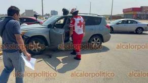 Al menos dos personas lesionadas y cuantiosos daños materiales fue el resultado de un choque entre dos vehículos particulares en el malecón costero y la calle Javier Anaya Villazón de Coatzacoalcos.