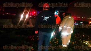 Fue metros adelante del restaurante Las Brisas donde el tráiler quedó recostado, el conductor identificado como Martín, lesionado al interior de la cabina y el cargamento de frutas y verduras esparcido sobre la cinta de rodamiento.