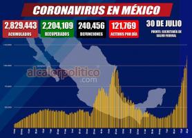 Asimismo, se detalló que en las últimas 24 horas el país sumó 19 mil 346 contagios, para dar un total de 2 millones 829 mil 443 casos confirmados.