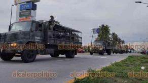 A bordo de alrededor de 50 unidades, arribaron a esta ciudad de Poza Rica 300 elementos del Ejército Mexicano y de la Guardia Nacional para sumarse a las labores de vigilancia y operativos contra la delincuencia.