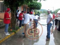 Trabajadores de Petróleos Mexicanos apoyaron en labores de limpieza en la zona habitacional Gaviotas, donde más de cien familias tuvieron que ser evacuadas tras severa inundación por cierre de válvulas en el cárcamo de bombeo, ahora podrán regresar a sus hogares.