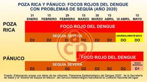 Poza Rica y Pánuco no sólo se mantienen como los “Focos Rojos” del dengue en la entidad veracruzana desde hace varios meses, sino también son parte de los municipios que después de una “sequía severa”, ahora padecen condición “Anormalmente Seca” y “Sequía Moderada” respectivamente, advierten la Secretaría de Salud del gobierno federal y la Comisión Nacional del Agua (CONAGUA).