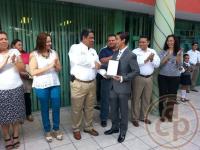 En el acto cívico de este lunes, el joven de 14 años, Juan Manuel Alonso Rodríguez, acudió para reunirse con el alcalde Sergio Lorenzo Quiroz Cruz y su esposa, la presidenta del DIF, Araceli Sánchez de Quiroz, y de manos de ellos como autoridades locales le otorgaron un reconocimiento tras logro nacional que le otorgó el Gobierno Federal.