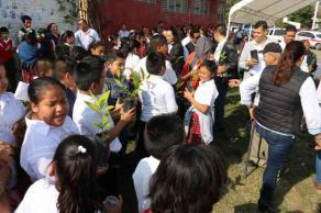 Cada uno de los alumnos de las escuelas “Adolfo López Mateos” y “Ricardo Flores Magón” recibieron en “adopción” árboles frutales, bajo el compromiso de preservarlos dándoles el cuidado necesario para que alcancen una gran alzada y contribuyan a mejorar el medio ambiente.