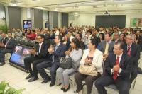 La rectora Sara Ladrón de Guevara y la secretaria de Administración y Finanzas, Clementina Guerrero García, presentaron el sistema en línea a directivos, académicos y estudiantes de la UV de las cinco regiones, las cuales se enlazaron mediante videoconferencia para participar del acto, así como a representantes de la banca comerciales y universitarios que se dieron cita en la USBI.