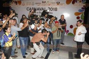 Autoridades municipales presentaron a la periodista Carolina Ocampo como la reina del Carnaval Veracruz 2018.