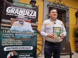 Este viernes se llevará a cabo la presentación del libro “Grandeza”, de la autoría de Andrés Manuel López Obrador, informó Nahúm Álvarez Pellico, exalcalde de Ixtaczoquitlán. La cita es a las cuatro de la tarde en el Auditorio “Dr. Manuel Suárez”.
