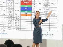 En contraste, señaló que la oposición disminuyó su presencia: “el PAN y PRI ganaron 57 municipios y van a gobernar 17.7 por ciento de la población”. Respecto al crecimiento de Movimiento Ciudadano, Sheinbaum comentó que “se llevó toda la suma de los partidos chiquitos que había antes y que ya no participaron en esta elección”.