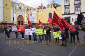 Integrantes del Sindicato Estatal de Trabajadores al Servicio de la Universidad Veracruzana (SETSUV) se manifestaron en la plaza Lerdo para exigir un aumento salarial del 20 %, pues, de lo contrario, advirtieron que irían a huelga.