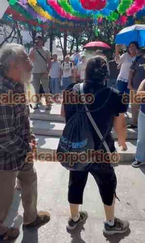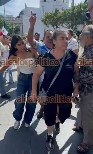 Veracruz, Ver., 15 de noviembre de 2025.- Durante la marcha de este sábado, mujer que dijo defender a MORENA y AMLO confrontó a la multitud que gritaba consignas contra el Gobierno Estatal y Federal. Se retiró del lugar en medio del repudio de manifestantes.